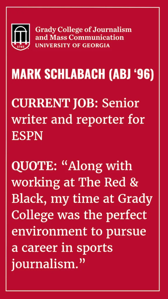 MS: Along with working at The Red & Black, my time at Grady College was the perfect environment to pursue a career in sports journalism. Of course, no one had a greater impact on my career as a student than the late Conrad Fink. He was critical and supportive of my work, while encouraging me to develop as a writer and take chances. I’m not sure that there was a more influential person in my career than Fink.