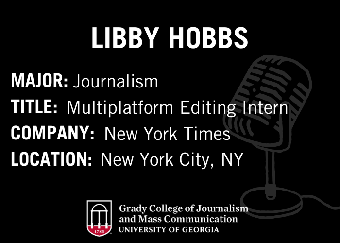 Libby Hobbs graduated with a journalism degree in May 2025 and is in New York City for a multiplatform editing internship with The New York Times through the Dow Jones News Fund. Read more about her internship experience below.