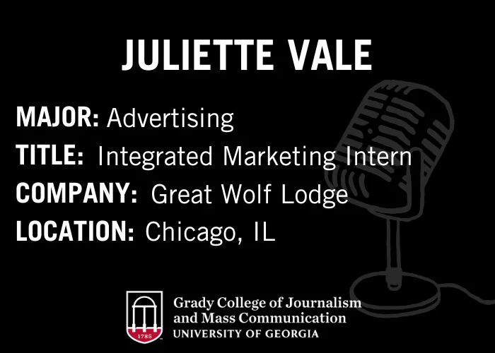 Juliette Vale is an advertising student in the Grady Chicago study away program and works as an integrated marketing intern at Great Wolf Lodge. Read more about her internship experience below.