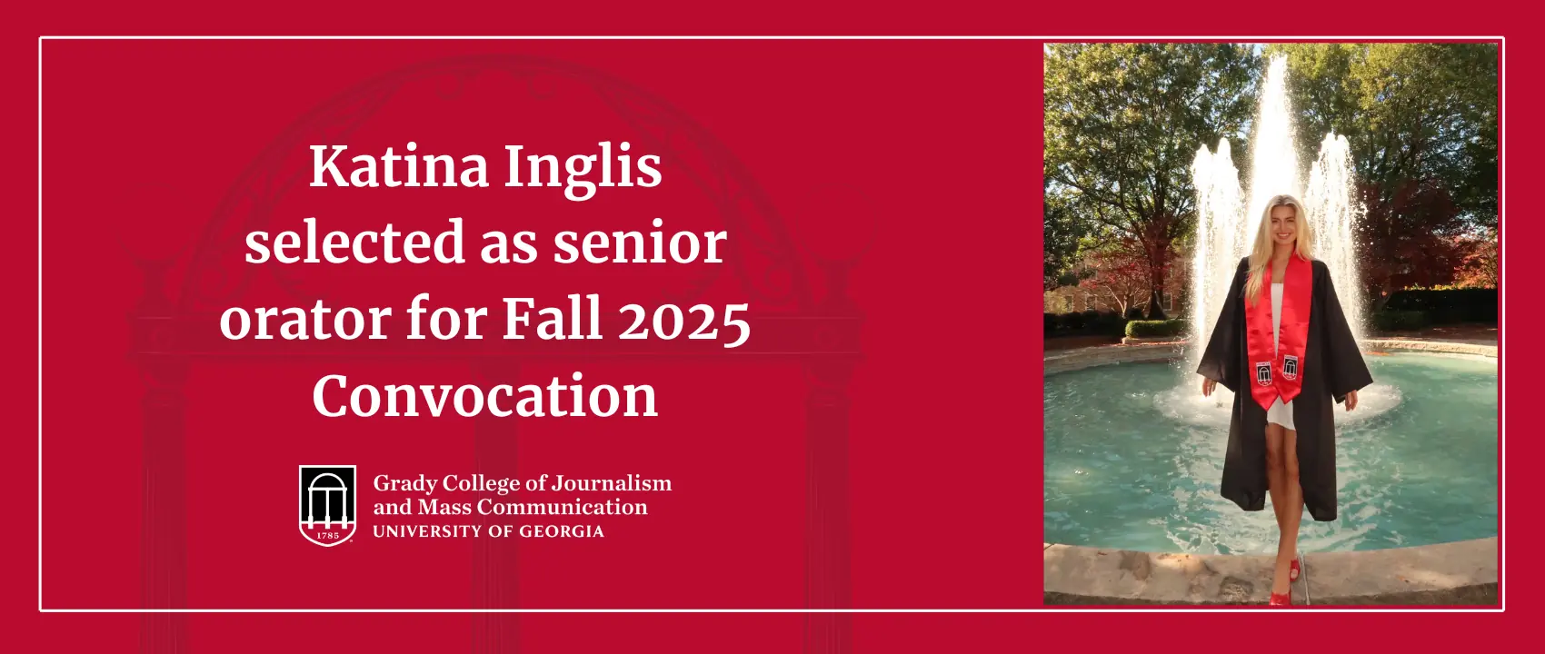 Katina Inglis, a public relations major and fashion merchandising minor from Alapharetta, Georgia, has been selected as the Fall 2025 senior orator for the Grady College Convocation.