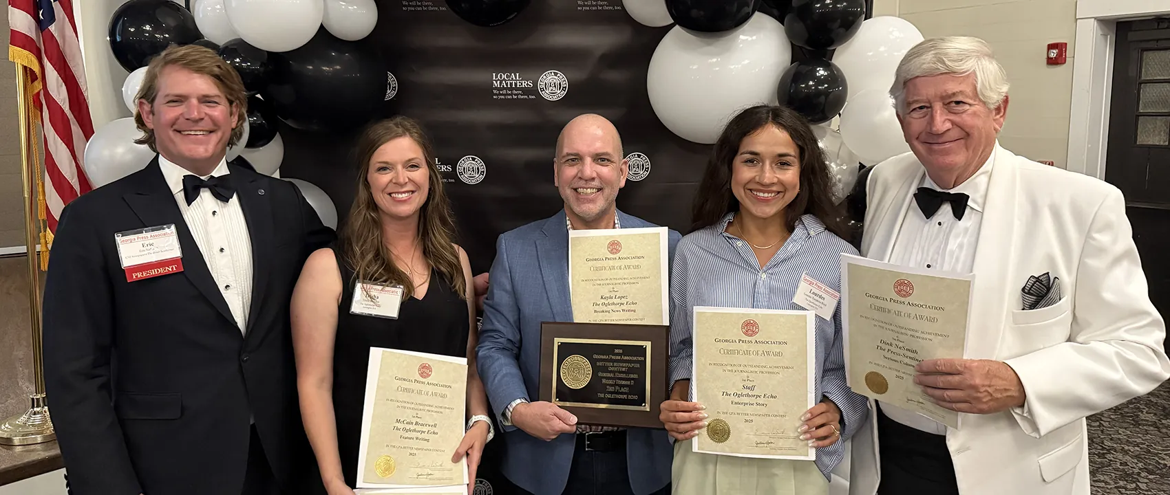 “Since the launch of the new era of The Oglethorpe Echo in 2021, more than 170 UGA student journalists have gained newspaper experience,” said Dink NeSmith (ABJ ’70), chairman of The Oglethorpe Echo Legacy Inc. “I am proud of them, but these awards also belong to the community. Without Oglethorpe County’s support, none of this would be possible.”