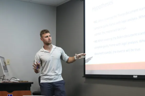 My dissertation is a verbal and visual rhetorical analysis of cable news framing of the U.S. Supreme Court by examining cable news broadcasts following the release of the Dobbs v. Jackson Women’s Health Organization opinion. Considering the influence over public opinion of the Court that news media has, it’s very important to me to see how the dramatic and overtly biased programming of cable news verbally and visually depicts the Court to the millions who watch.